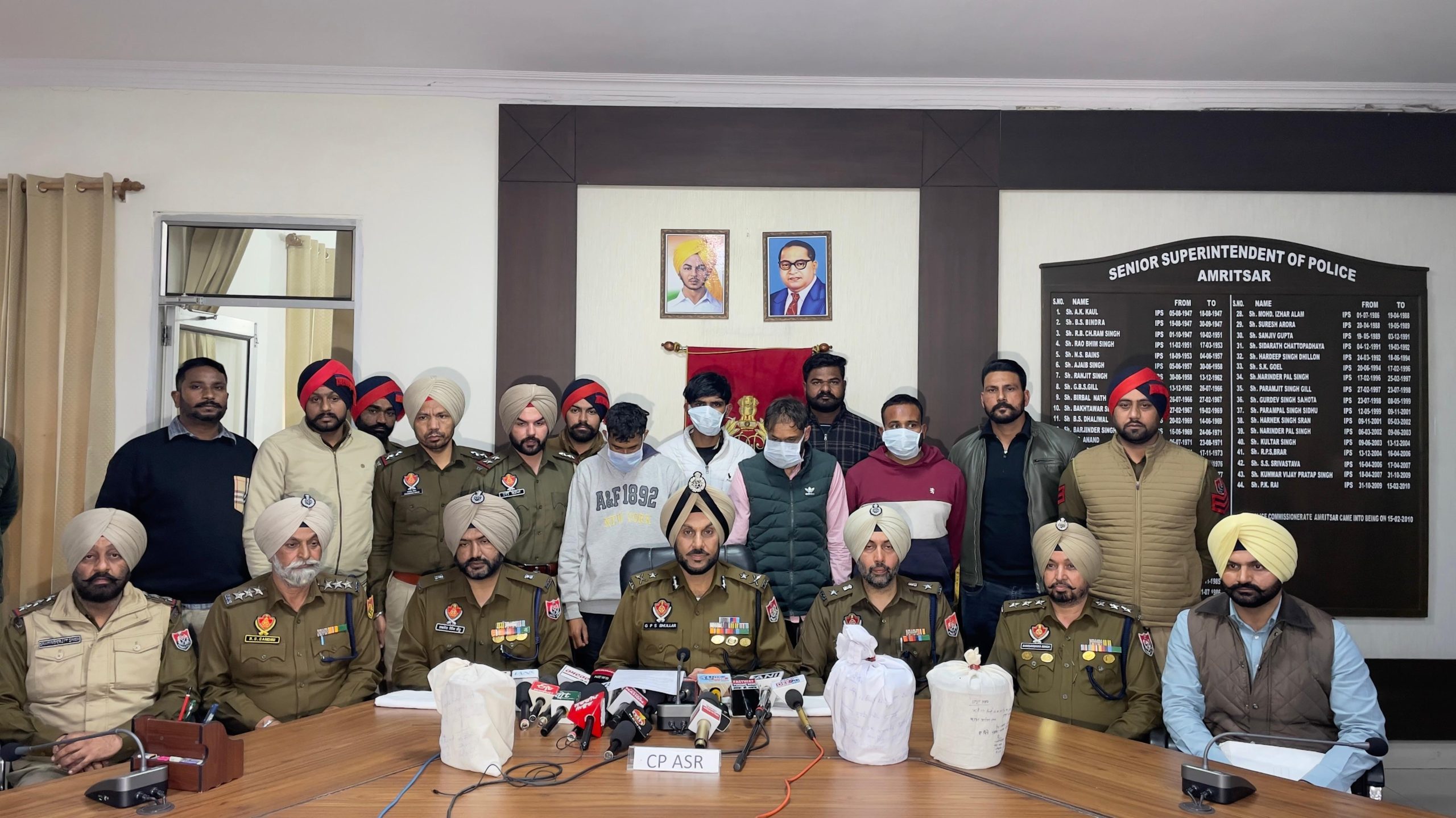 ਮੁੱਖ ਮੰਤਰੀ ਭਗਵੰਤ ਸਿੰਘ ਮਾਨ ਦੇ ਦਿਸ਼ਾ-ਨਿਰਦੇਸ਼ਾਂ ਅਨੁਸਾਰ ਨਸ਼ਿਆਂ ਵਿਰੁੱਧ ਵਿੱਢੀ ਜੰਗ ਦੌਰਾਨ, ਅੰਮ੍ਰਿਤਸਰ ਕਮਿਸ਼ਨਰੇਟ ਪੁਲਿਸ ਨੇ ਦੋ ਵੱਖ-ਵੱਖ ਮਾਮਲਿਆਂ ਵਿੱਚ ਚਾਰ ਨਸ਼ਾ ਤਸਕਰਾਂ ਨੂੰ ਗ੍ਰਿਫ਼ਤਾਰ ਕੀਤਾ ਹੈ ਅਤੇ ਉਨ੍ਹਾਂ ਦੇ ਕਬਜ਼ੇ ਵਿੱਚੋਂ 5.06 ਕਿਲੋਗ੍ਰਾਮ ਹੈਰੋਇਨ ਬਰਾਮਦ ਕੀਤੀ ਹੈ। ਇਹ ਜਾਣਕਾਰੀ ਅੱਜ ਇੱਥੇ ਡਾਇਰੈਕਟਰ ਜਨਰਲ ਆਫ਼ ਪੁਲਿਸ (ਡੀਜੀਪੀ) ਪੰਜਾਬ ਗੌਰਵ ਯਾਦਵ ਨੇ ਦਿੱਤੀ।