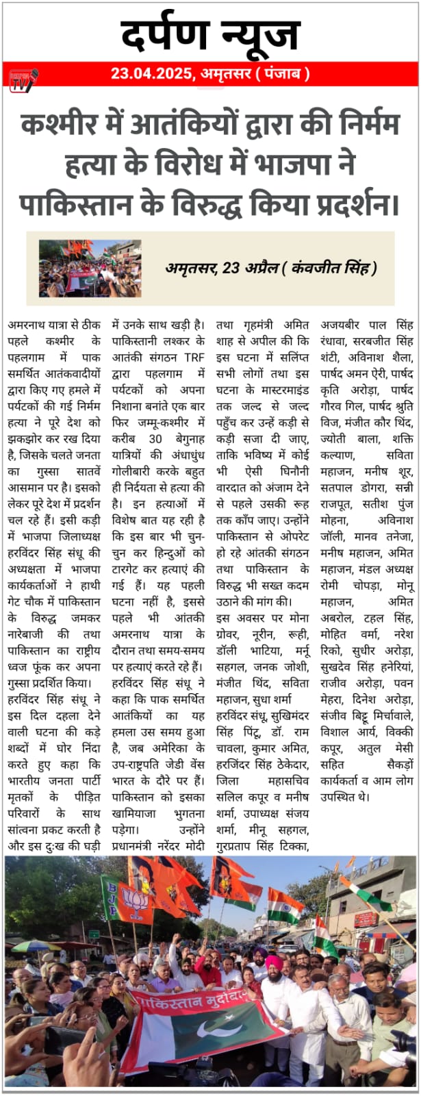 Home/State/Punjab/Amritsar/कश्मीर में आतंकियों द्वारा की निर्मम हत्या के विरोध में भाजपा ने पाकिस्तान के विरुद्ध किया प्रदर्शन। AmritsarBreaking NewsE-PaperLocal News Trending कश्मीर में आतंकियों द्वारा की निर्मम हत्या के विरोध में भाजपा ने पाकिस्तान के विरुद्ध किया प्रदर्शन। Kanwaljit SinghApril 24, 2025 98 Less than a minute Kanwaljit SinghApril 24, 2025 98 Less than a minute Facebook Twitter LinkedIn Tumblr Pinterest Reddit VKontakte Share via Email Print
