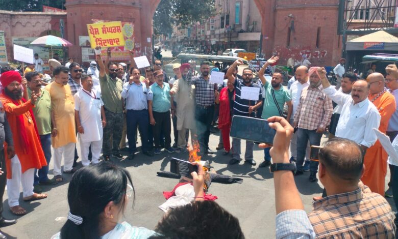 ਅੱਜ ਪ੍ਰੈਸ ਸੰਘਰਸ਼ ਜਰਨਲਿਸਟਸ ਐਸੋ ਰਜਿ ਨੇ ਪਹਿਲਗਾਮ ਜੰਮੂ ਕਸ਼ਮੀਰ ਵਿੱਚ 22 ਅਪ੍ਰੈਲ ਵਾਲੇ ਦਿਨ ਹੋਏ ਹੱਤਿਆ ਕਾਂਡ ਨੂੰ ਲੈ ਕੇ ਅੰਮ੍ਰਿਤਸਰ ਦੇ ਹਾਲ ਗੇਟ ਵਿਖੇ ਪਾਕਿਸਤਾਨ ਦਾ ਪੁਤਲਾ ਫੂਕਿਆ। ਪੱਤਰਕਾਰਾਂ ਨੇ ਪਾਕਿਸਤਾਨ ਮੁਰਦਾਬਾਦ, ਅੰਤਕਵਾਦ ਮੁਰਦਾਬਾਦ ਤੇ ਭਾਰਤ ਮਾਤਾ ਕੀ ਜੈ ਦੇ ਜਮ ਕੇ ਨਾਅਰੇ ਲਗਾਉਣ ਤੋਂ ਬਾਅਦ ਸ਼੍ਰੀ ਸ਼੍ਰੀ 1008 ਮਹਾਂਮੰਡੇਲਸ਼ਵਰ ਪ.ਪੂ ਮਨਕਾਮਨੇਸ਼ਵਰ ਗਿਰੀ ਜੀ ਮਹਾਰਾਜ ਅਤੇ ਪ੍ਰਧਾਨ ਸੰਜੀਵ ਪੁੰਜ ਤੇ ਸਮੂਹ ਪੱਤਰਕਾਰਾਂ ਨੇ ਮਿਲ ਕੇ ਪਾਕਿਸਤਾਨ ਦਾ ਪੁਤਲਾ ਫੂਕਿਆ।
