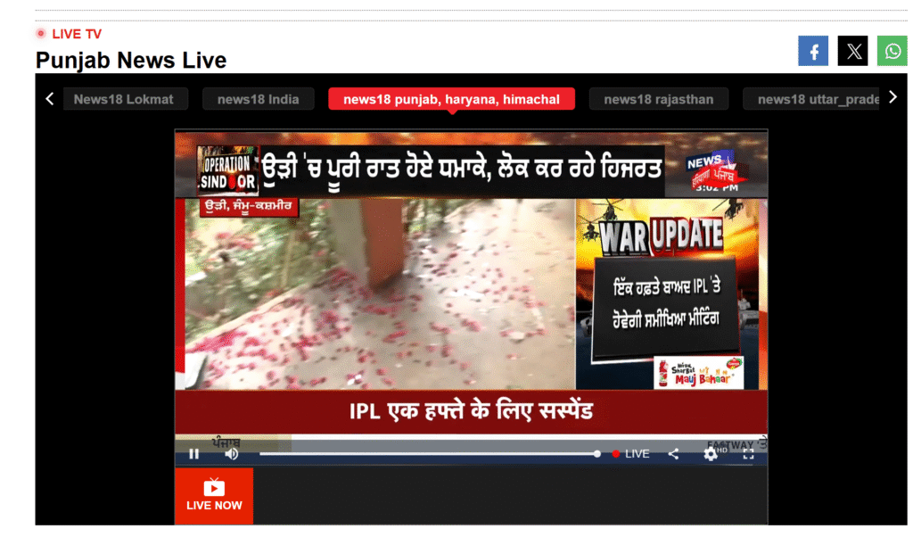 Home/Breaking News/Punjab News Live Breaking NewsLIVE TVLocal News Trending Punjab News Live Abhinandan SinghMay 9, 2025 42 Less than a minute https://punjab.news18.com/live-tv/ Abhinandan SinghMay 9, 2025 42 Less than a minute Facebook Twitter LinkedIn Tumblr Pinterest Reddit VKontakte Share via Email Print