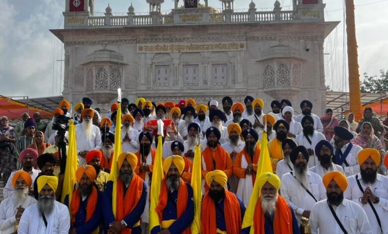 ਨੌਵੇਂ ਪਾਤਸ਼ਾਹ ਸ੍ਰੀ ਗੁਰੂ ਤੇਗ ਬਹਾਦਰ ਸਾਹਿਬ ਜੀ ਦੇ ਸ਼ਹੀਦੀ ਸਾਕੇ ਦੀ 350 ਸਾਲਾ ਸ਼ਤਾਬਦੀ ਦੇ ਸਬੰਧ ਵਿਚ ਗੁਰਦੁਆਰਾ ਧੋਬੜੀ ਸਾਹਿਬ ਅਸਾਮ ਤੋਂ ਆਰੰਭ ਹੋਏ ਸ਼ਹੀਦੀ ਨਗਰ ਕੀਰਤਨ ਦੀ ਤਖ਼ਤ ਸੱਚਖੰਡ ਸ੍ਰੀ ਹਜ਼ੂਰ ਅਬਚਲ ਨਗਰ ਨਾਂਦੇੜ ਸਾਹਿਬ ਵਿਖੇ ਦੋ ਦਿਨਾਂ ਪੜਾਅ ਮਗਰੋਂ ਰਵਾਨਗੀ ਮੌਕੇ ਸ਼੍ਰੋਮਣੀ ਕਮੇਟੀ ਪ੍ਰਧਾਨ ਐਡਵੋਕੇਟ ਹਰਜਿੰਦਰ ਸਿੰਘ ਧਾਮੀ, ਸਿੰਘ ਸਾਹਿਬਾਨ ਅਤੇ ਵੱਡੀ ਗਿਣਤੀ ਵਿਚ ਸ਼੍ਰੋਮਣੀ ਕਮੇਟੀ ਮੈਂਬਰਾਂ ਨੇ ਵਿਸ਼ੇਸ਼ ਤੌਰ ’ਤੇ ਸ਼ਮੂਲੀਅਤ ਕੀਤੀ। ਅੱਜ ਤਖ਼ਤ ਸਾਹਿਬ ਤੋਂ ਨਗਰ ਕੀਰਤਨ ਖਾਲਸਾਈ ਜਾਹੋ ਜਲਾਲ ਨਾਲ ਔਰੰਗਾਬਾਦ ਲਈ ਰਵਾਨਾ ਹੋਇਆ। ਇਸ ਮੌਕੇ ਸੰਗਤਾਂ ਵੱਲੋਂ ਜੈਕਾਰਿਆਂ ਦੀ ਗੂੰਜ ਅਲੌਕਿਕ ਦ੍ਰਿਸ਼ ਸਿਰਜ ਰਹੀ ਸੀ ਅਤੇ ਸਮੁੱਚਾ ਸ਼ਹਿਰ ਖ਼ਾਲਸਾਈ ਰੰਗਤ ਵਿਚ ਰੰਗਿਆ ਹੋਇਆ ਸੀ।