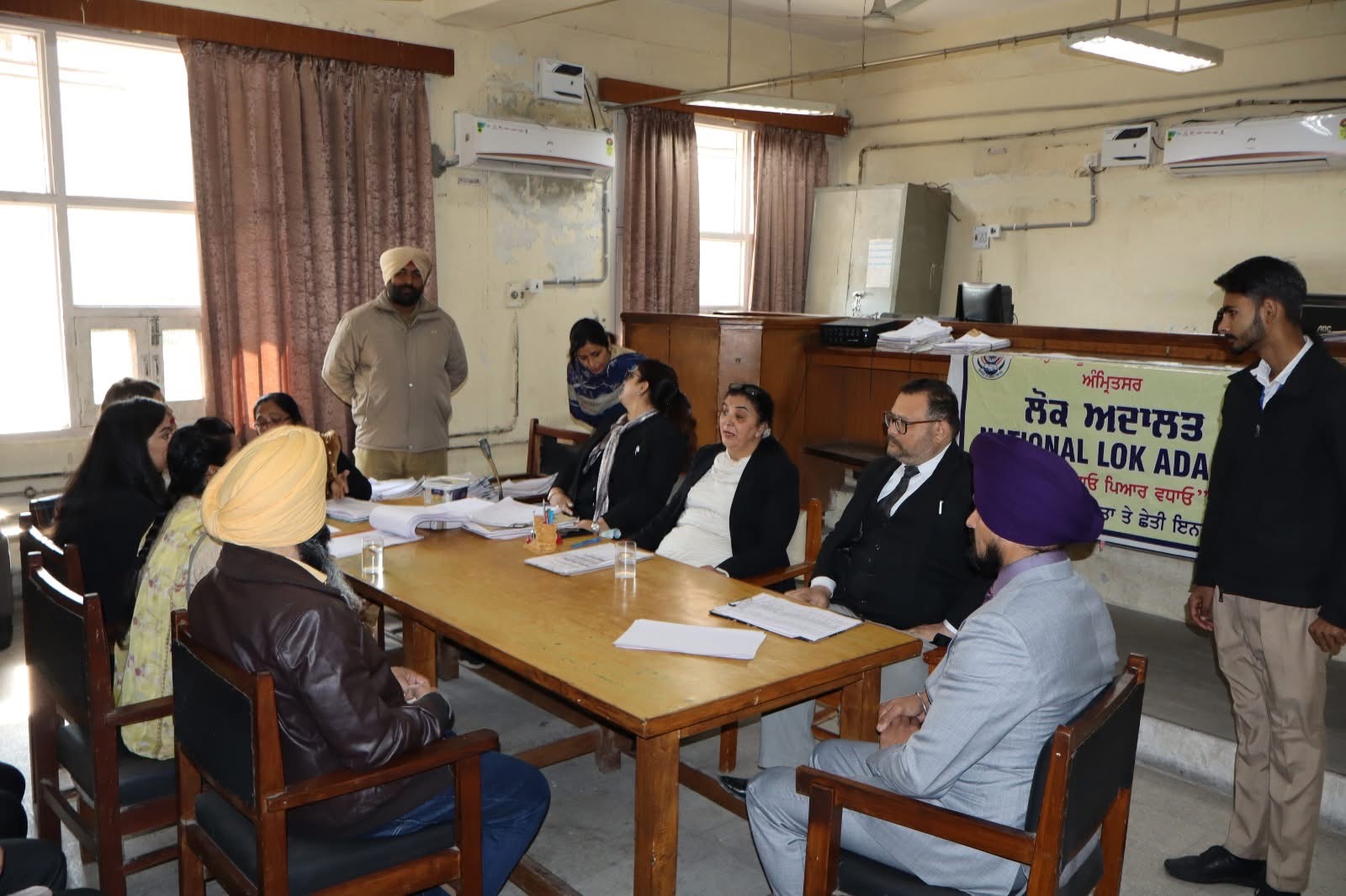ਸ੍ਰੀ ਅਮਰਿੰਦਰ ਸਿੰਘ ਗਰੇਵਾਲ, ਜਿਲ੍ਹਾ ਅਤੇ ਸੇਸ਼ਨਜ-ਕਮ-ਚੇਅਰਮੈਨ, ਜਿਲ੍ਹਾ ਕਾਨੂੰਨੀ ਸੇਵਾਵਾਂ ਅਥਾਰਟੀ, ਅੰਮ੍ਰਿਤਸਰ ਦੀ ਰਹਿਨੁਮਾਈ ਹੇਠ ਅਤੇ ਸ਼੍ਰੀ ਅਮਰਦੀਪ ਸਿੰਘ ਬੈਂਸ, ਸਿਵਲ ਜੱਜ-ਸਹਿਤ-ਸਕੱਤਰ ਜਿਲ੍ਹਾ ਕਾਨੂੰਨੀ ਸੇਵਾਵਾਂ ਅਥਾਰਟੀ ਜੀਆਂ ਦੇ ਯਤਨਾ ਸਦਕਾ 14 ਦਸੰਬਰ 2024 ਨੂੰ ਨੈਸ਼ਨਲ ਲੋਕ ਅਦਾਲਤ ਦਾ ਆਯੋਜਨ ਕੀਤਾ ਗਿਆ। ਇਸ ਨੈਸ਼ਨਲ ਲੋਕ ਅਦਾਲਤ ਦੌਰਾਨ ਪਰਿਵਾਰਕ ਝਗੜਿਆਂ ਦੇ ਨਿਪਟਾਰੇ ਵਾਸਤੇ ਖਾਸ ਤੌਰਾ ਤੇ 2 ਪਰਿਵਾਰਿਕ ਕੋਰਟ ਬੈਂਚਾਂ ਦਾ ਗਠਨ ਕੀਤਾ ਗਿਆ। ਜਿਸ ਵਿੱਚ 1 ਕੋਰਟ ਸਿਮ ਮਨਦੀਪ ਕੌਰ, ਪ੍ਰਿੰਸਿਪਲ ਜੱਜ ਫੈਮਿਲੀ ਕੋਰਟ ਅਤੇ ਦੁਸਰਾ ਬੈਂਚ ਮਿਸ ਸੰਜੀਤਾ, ਵਧੀਕ ਪ੍ਰਿੰਸਿਪਲ ਜੱਜ ਫੈਮਿਲੀ ਕੋਰਟ, ਅੰਮ੍ਰਿਤਸਰ ਲਗਾਇਆ ਗਿਆ।ਇਸ ਸਬੰਧੀ ਜਾਣਕਾਰੀ ਦਿੰਦੀਆਂ ਹੋਇਆ ਸ੍ਰੀ ਅਮਰਦੀਪ ਸਿੰਘ ਬੈਂਸ ਜੱਜ ਸਾਹਿਬ ਨੇ ਦੱਸਿਆ ਕੀ ਨੇਸ਼ਨਲ ਲੋਕ ਅਦਾਲਤ ਦੌਰਾਨ ਪਰਿਵਾਰਿਕ ਝਗੜਿਆ ਨੂੰ ਸੁਣਦੇ ਹੋਏ ਸਿਮ ਮਨਦੀਪ ਕੌਰ, ਪ੍ਰਿੰਸਿਪਲ ਜੱਜ ਫੈਮਿਲੀ ਕੋਰਟ ਅਤੇ ਮਿਸ ਸੰਜੀਤਾ, ਵਧੀਕ ਪ੍ਰਿੰਸਿਪਲ ਜੱਜ ਫੈਮਿਲੀ ਕੋਰਟ, ਵੱਲੋਂ 228 ਮਾਮਲੀਆਂ ਵਿੱਚੋਂ 103 ਦਾ ਨਿਪਟਾਰਾ ਦੋਹਾਂ ਧਿਰਾਂ ਦੀ ਸਹਿਮਤੀ ਨਾਲ ਕੀਤਾ ਗਿਆ।