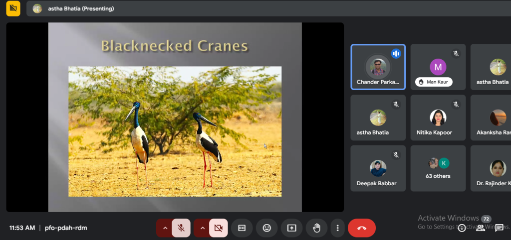 ਪ੍ਰੋ: ਰਜਿੰਦਰ ਕੌਰ, ਬਨਸਪਤੀ ਅਤੇ ਵਾਤਾਵਰਣ ਵਿਗਿਆਨ ਵਿਭਾਗ ਦੇ ਮੁਖੀ ਨੇ ਪੰਜਾਬ ਦੇ ਪੰਛੀਆਂ, ਉਨ੍ਹਾਂ ਦੀ ਹੋਂਦ ਨੂੰ ਖ਼ਤਰੇ ਅਤੇ ਸੰਭਾਲ ਦੀਆਂ ਰਣਨੀਤੀਆਂ ਬਾਰੇ ਚਰਚਾ ਕਰਦਿਆਂ ਪੰਜਾਬ ਵਿੱਚ ਇਨ੍ਹਾਂ ਦਿਨਾਂ ਚਾਈਨੀਜ਼ ਡੋਰ ਅਤੇ ਪਰਾਲੀ ਸਾੜਨ ਨਾਲ ਪਤੰਗ ਉਡਾਉਣ ਨਾਲ ਪੰਛੀਆਂ ਨੂੰ ਜੋ ਗੰਭੀਰ ਖ਼ਤਰਾ ਹੈ ਨੂੰ ਗੰਭੀਰਤਾ ਨਾਲ ਲੈਣ ਲਈ ਕਿਹਾ । ਉਹਨਾਂ ਕਿ ਪੰਛੀ ਡੋਰਾਂ ਵਿੱਚ ਫਸ ਜਾਂਦੇ ਹਨ ਜਿਸ ਨਾਲ ਗੰਭੀਰ ਜ਼ਖਮੀ ਹੋ ਜਾਂਦੇ ਹਨ ਅਤੇ ਉਨ੍ਹਾਂ ਨੂੰ ਆਪਣੀ ਜਾਨ ਵੀ ਗੁਵਾਉਣੀ ਪੈਂਦੀ ਹੈ। ਚੀਨੀ ਡੋਰ ਤੇ ਪਾਬੰਦੀ ਹੋਣ ਦੇ ਬਾਵਜੂਦ ਅਤੇ ਪ੍ਰਸ਼ਾਨ ਸਖ਼ਤ ਹਦਾਇਤਾਂ ਦੇਣ ਦੇ ਬਾਵਜੂਦ ਵੀ ਡੋਰ ਦੀ ਕਾਰਨ ਪੰਜਾਬ ਦੇ ਸ਼ਹਿਰਾਂ ਵਿੱਚ ਸੈਂਕੜੇ ਪੰਛੀਆਂ ਦੀ ਮੌਤ ਹੋ ਰਹੀ ਹੈ। ਉਨ੍ਹਾਂ ਇਹ ਵੀ ਦੱਸਿਆ ਕਿ ਪਰਾਲੀ ਸਾੜਨ ਨਾਲ ਜ਼ਮੀਨ ਦੇ ਆਲ੍ਹਣੇ ਵੀ ਨਸ਼ਟ ਹੋ ਜਾਂਦੇ ਹਨ ਅਤੇ ਛੋਟੇ ਪੰਛੀਆਂ ਨੂੰ ਸਾੜ ਦਿੱਤਾ ਜਾਂਦਾ ਹੈ ਅਤੇ ਖੇਤਾਂ ਵਿਚਲੇ ਕੀੜੇ-ਮਕੌੜਿਆਂ ਨੂੰ ਵੀ ਮਾਰ ਦਿੱਤਾ ਜਾਂਦਾ ਹੈ ਜਿਨ੍ਹਾਂ ‘ਤੇ ਬਹੁਤ ਸਾਰੇ ਪੰਛੀ ਭੋਜਨ ਕਰਦੇ ਹਨ। ਉਸਨੇ ਸ੍ਰੀ ਗੁਰੂ ਗ੍ਰੰਥ ਸਾਹਿਬ ਜੀ ਵਿੱਚ ਦਰਸਾਏ ਵੱਖ-ਵੱਖ ਪੰਛੀਆਂ ਬਾਰੇ ਵੀ ਚਾਨਣਾ ਪਾਇਆ। ਡਾ: ਅਵਿਨਾਸ਼ ਨਾਗਪਾਲ ਸਮੇਤ ਹੋਰ ਫੈਕਲਟੀ ਮੈਂਬਰਾਂ, ਪ੍ਰੋ: ਐਮ.ਐਸ. ਭੱਟੀ, ਪ੍ਰੋ: ਜਤਿੰਦਰ ਕੌਰ ਅਤੇ ਡਾ: ਆਸਥਾ ਭਾਟੀਆ ਨੇ ਵੀ ਮਾਪਿਆਂ ਨੂੰ ਅਪੀਲ ਕੀਤੀ ਕਿ ਉਹ ਆਪਣੇ ਬੱਚਿਆਂ ਨੂੰ ਕਿਸੇ ਹੋਰ ਦੇ ਬੱਚਿਆਂ ਨੂੰ ਮਾਰਨ ਲਈ ਚੀਨੀ ਡੋਰ ਕਿਸੇ ਵੀ ਹਾਲਤ ਵਿਚ ਲੈ ਕਿ ਨਾ ਦੇਣ।ਮਿਸ਼ਨ ਆਗਾਜ਼ (ਐਨ.ਜੀ.ਓ.) ਦੇ ਕਾਰਜਕਾਰੀ ਨਿਰਦੇਸ਼ਕ ਸ੍ਰੀ ਦੀਪਕ ਬੱਬਰ ਨੇ ਵੀ ਚਾਈਨਾ ਡੋਰ ਅਤੇ ਪਰਾਲੀ ਸਾੜਨ ਕਾਰਨ ਪੰਛੀਆਂ ਦੀ ਮੌਤ ਬਾਰੇ ਚਿੰਤਾ ਪ੍ਰਗਟਾਈ। ਵਿਦਿਆਰਥੀਆਂ ਅਤੇ ਖੋਜ ਵਿਦਵਾਨਾਂ ਨੇ ਵੈਬੀਨਾਰ ਵਿੱਚ ਸਰਗਰਮੀ ਨਾਲ ਹਿੱਸਾ ਲਿਆ, ਕਵਿਤਾਵਾਂ ਸੁਣਾਈਆਂ ਅਤੇ ਆਪਣੇ ਸਥਾਨਕ ਖੇਤਰਾਂ ਤੋਂ ਪੰਛੀਆਂ ਦੀ ਵਿਭਿੰਨਤਾ ਦੀਆਂ ਫੋਟੋਆਂ ਪੇਸ਼ ਕੀਤੀਆਂ ਅਤੇ ਪੰਛੀਆਂ ਦੀ ਵਿਭਿੰਨਤਾ ਦੀ ਰੱਖਿਆ ਅਤੇ ਵਾਤਾਵਰਣ ਦੇ ਸੰਭਾਲ ਦੀ ਜ਼ਿੰਮੇਵਾਰੀ ਆਪਣੇ ਮੋਢਿਆਂ ਤੇ ਲਈ ।