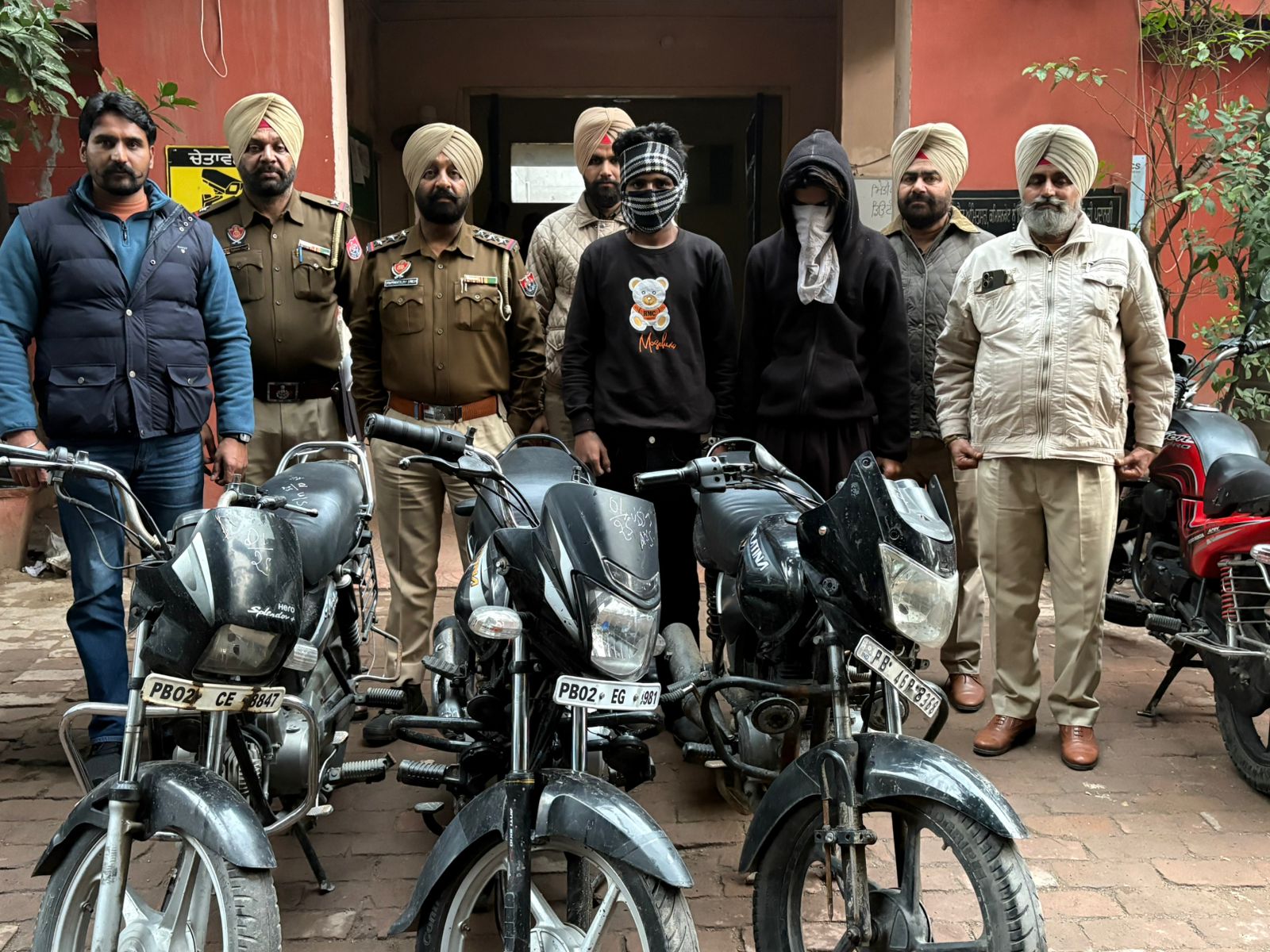 ਸ਼੍ਰੀ ਸ਼ਿਵਦਰਸ਼ਨ ਸਿੰਘ ਏ.ਸੀ.ਪੀ ਵੈਸਟ, ਅੰਮ੍ਰਿਤਸਰ ਦੀ ਨਿਗਰਾਨੀ ਹੇਠ ਇੰਸਪੈਕਟਰ ਸ਼ਮਿੰਦਰਜੀਤ ਸਿੰਘ , ਮੁੱਖ ਅਫਸਰ ਥਾਣਾ ਕਨਟੋਨਮੈਂਟ ਅੰਮ੍ਰਿਤਸਰ ਦੀ ਅਗਵਾਈ ਹੇਠ ਏ.ਐਸ.ਆਈ ਹਰਜਿੰਦਰ ਸਿੰਘ ਇੰਚਾਰਜ ਪੁਲਿਸ ਚੋਕੀ ਗੁਮਟਾਲਾ ਅਤੇ ਏ.ਐਸ.ਆਈ ਤਜਿੰਦਰ ਸਿੰਘ ਸਮੇਤ ਪੁਲਿਸ ਪਾਰਟੀ ਵੱਲੋਂ ਗਸ਼ਤ ਦੌਰਾਨ ਦੋਸ਼ੀ ਰਘੂਵੀਰ ਸਿੰਘ ਉਰਫ ਰਘੂ ਅਤੇ ਜੁਗਰਾਜ ਸਿੰਘ ਉਰਫ ਜੱਗੂ ਨੂੰ ਗ੍ਰਿਫਤਾਰ ਕਰਕੇ ਉਸ ਵਲੋਂ 03 ਮੋਟਰਸਾਈਕਲ ਬ੍ਰਾਮਦ ਕਰਕੇ ਮੁਕੱਦਮਾ ਦਰਜ ਰਜਿਸਟਰ ਕੀਤਾ ਗਿਆ।