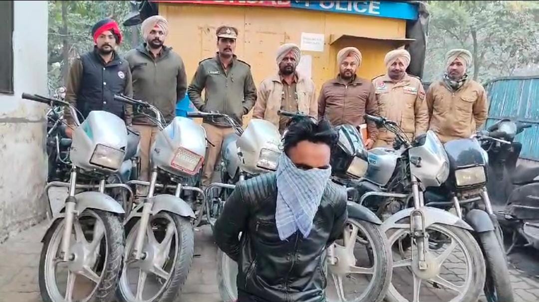 ਸ੍ਰੀ ਗੁਰਪ੍ਰੀਤ ਸਿੰਘ ਭੁੱਲਰ, ਆਈ.ਪੀ.ਐਸ ਕਮਿਸ਼ਨਰ ਪੁਲਿਸ,ਅੰਮ੍ਰਿਤਸਰ ਜੀ ਦੀਆਂ ਹਦਾਇਤਾਂ ਤੇ ਸ੍ਰੀਮਤੀ ਹਰਕਮਲ ਕੌਰ, ਏ.ਡੀ.ਸੀ.ਪੀ ਸਿਟੀ-2, ਅੰਮ੍ਰਿਤਸਰ ਦੇ ਦਿਸ਼ਾ ਨਿਰਦੇਸ਼ਾਂ ਤੇ ਸ੍ਰੀ ਮਨਿੰਦਰ ਪਾਲ ਸਿੰਘ, ਏ.ਸੀ.ਪੀ ਨੌਰਥ,ਅੰਮ੍ਰਿਤਸਰ ਦੀ ਨਗਰਾਨੀ ਹੇਠ ਇੰਸਪੈਕਟਰ ਰੋਬਿੰਨ ਹੰਸ ਮੁੱਖ ਅਫ਼ਸਰ ਥਾਣਾ ਰਣਜੀਤ ਐਵੀਨਿਊ,ਅੰਮ੍ਰਿਤਸਰ ਦੀ ਪੁਲਿਸ ਪਾਰਟੀ ਏ.ਐਸ.ਆਈ ਸੁਵਿੰਦਰਪਾਲ ਸਿੰਘ ਸਮੇਤ ਸਾਥੀ ਕਰਮਚਾਰੀਆਂ ਵੱਲੋਂ ਮਿਲੀ ਪੁਖ਼ਤਾ ਸੂਚਨਾਂ ਦੇ ਅਧਾਰ ਤੇ ਹਰਤੇਜ਼ ਹਸਪਤਾਲ ਦੇ ਪਿੱਛਲੇ ਪਾਸੇ ਏ-ਬਲਾਕ ਦੇ ਖੇਤਰ ਤੋਂ ਦਿਲਬਾਗ ਸਿੰਘ ਉਰਫ਼ ਬਾਗਾ ਪੁੱਤਰ ਪ੍ਰਗਟ ਸਿੰਘ ਵਾਸੀ ਪਿੰਡ ਕੰਡਿਆਲ ਹਾਲ ਵਾਸੀ ਗੁਰੂ ਰਾਮ ਦਾਸ ਨਗਰ, ਕੋਟ ਖਾਲਸਾ, ਅੰਮ੍ਰਿਤਸਰ ਸਮੇਤ ਮੋਟਰਸਾਈਕਲ ਸਪਲੈਂਡਰ ਦੇ ਕਾਬੂ ਕੀਤਾ ਗਿਆ। ਮੁੱਢਲੀ ਪੁੱਛਗਿੱਛ ਦੌਰਾਨ ਇਸਦੇ ਇਕਸ਼ਾਫ ਤੇ 05 ਚੌਰੀ ਦੇ ਮੋਟਰਸਾਈਕਲ ਹੋਰ ਬ੍ਰਾਮਦ ਕੀਤੇ ਗਏ। ਗ੍ਰਿਫ਼ਤਾਰ ਦੋਸ਼ੀ ਨੂੰ ਮਾਨਯੋਗ ਅਦਾਲਤ ਵਿੱਚ ਪੇਸ਼ ਕਰਕੇ ਰਿਮਾਂਡ ਹਾਸਲ ਕਰਕੇ ਬਾਰੀਕੀ ਨਾਲ ਪੁੱਛਗਿੱਛ ਕੀਤੀ ਜਾਵੇਗੀ।
